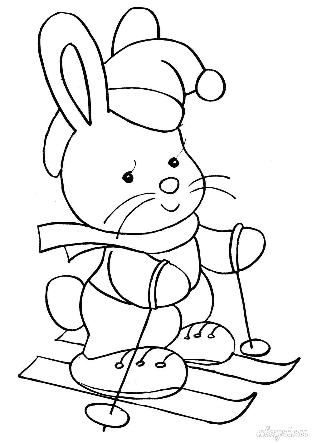 Рисунок раскраска на зимнюю тему Лыжи