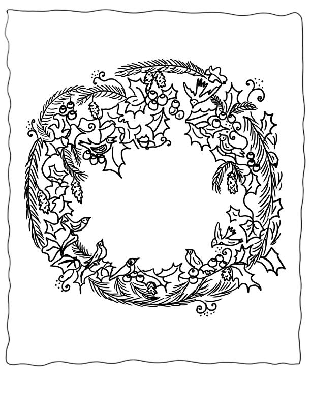 Зимние рисунки раскраски Новогодний рождественский венок