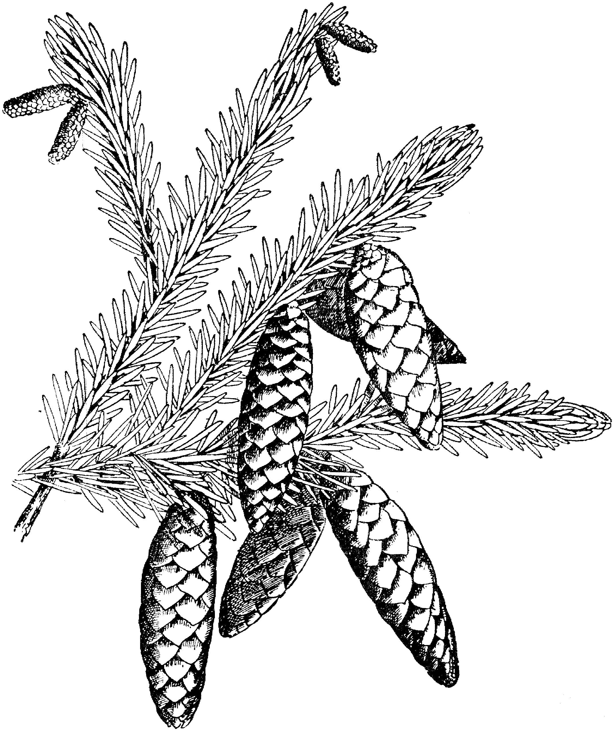 Сосна с шишками Зимние раскраски для девочек Шишки