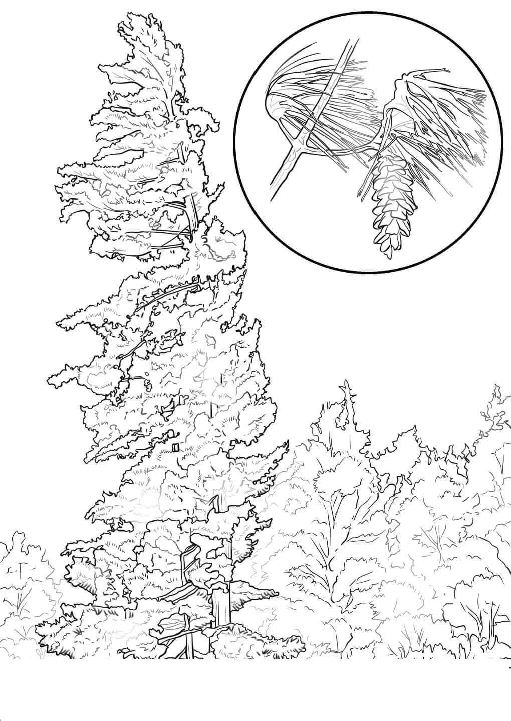 Сосна с шишками Зимние раскраски для девочек